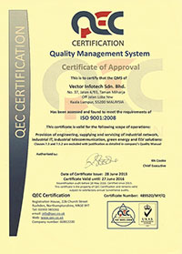 Posted on 13th March 2013 Malaysia, August 13, 2013 – Vector InfoTech Sdn Bhd, a regional provider of Industrial Telecommunication & Data Communication Systems and Networking Products, proudly announces that the company has successfully obtained the ISO 9001:2008 certification for conforming to the Quality Management System Standard – a quality standard that is recognized and respected worldwide. The registration approval was received from QEC Certification Services, a global leading inspection, verification, testing and certification company whom act as an independent party to execute an extensive review of the company’s quality management system. This ISO 9001:2008 certification is valid for our: “Provision of engineering, supplying and servicing of industrial network, industrial IT, industrial telecommunication, green energy and ELV solutions”. The new version of the ISO 9001 standard places greater emphasis on top management involvement in the quality process, as well as greater focus on customers' satisfaction and continuous improvement. The new standard is designed to cover all the important processes affecting the quality of the products, solutions and services. Our company recognizes that excellence must be an on-going. This award represents the commitment of the entire company to deliver quality products and solutions that conform to worldwide quality standard.